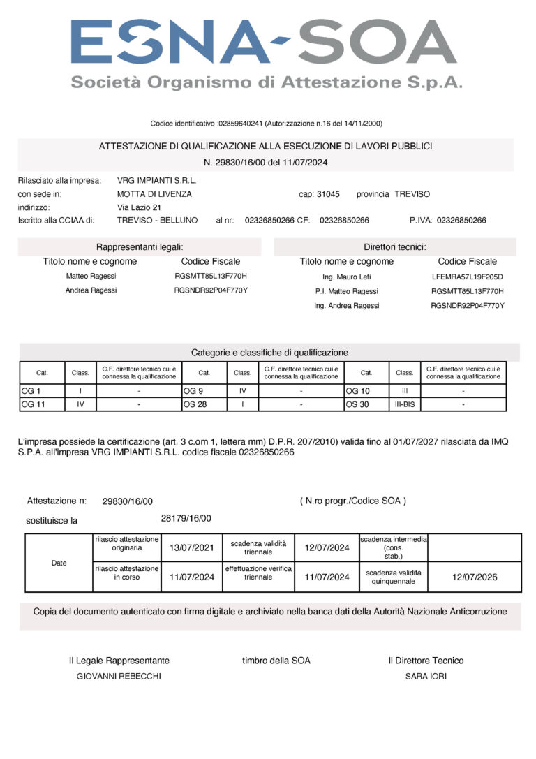 L’azienda è in possesso anche della certificazione SOA per la partecipazione a gare ed appalti pubblici per le seguenti categorie: